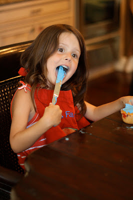 Reagan has a love for the freezer and the fridge. Anytime it is open she is right there. She happened to find this popsicle and grabbed and started sucking on the plastic cover. So I decided I'd be a nice mom and let her have at it. So I stripped her down. She didn't seem that interested after a while and so I took it away and licked a drip on my finger and thought-man that is fermented grape juice-almost like Sangria. Just then my mom walked in to tell me it was WINE! Hilarious. Apparently, my brother had bought it to cook with last year and my mom didn't want him to throw it away since it was so expensive that he suggested freezing it. Little did either of them think that putting it in an enticing popsicle form would attract babies. Camryn had been so mad I didn't let her have one. My mom was SO embarrassed. But I just thought it was so funny. Something to always remember.